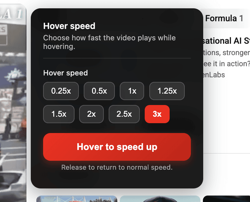 The CTA "Hover to speed up" was confusing since the extension also supports slowing down.